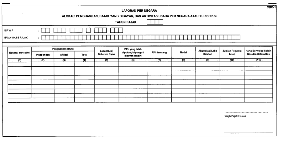 Dokumen TP, termasuk CbCR, wajib dibuat dalam Bahasa Indonesia. Jika Wajib Pajak memiliki izin pembukuan dalam bahasa asing, dokumen dapat dibuat dalam bahasa asing tersebut namun harus disertai terjemahan Bahasa Indonesia.