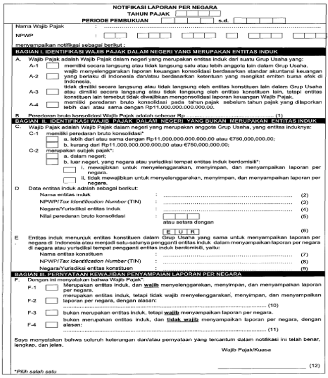 Peraturan Menteri Keuangan Nomor 172 Tahun 2023 (PMK 172/2023) telah mempertegas dan mengonsolidasi aturan mengenai hal ini. Notifikasi ini berfungsi sebagai pemberitahuan resmi kepada otoritas pajak mengenai entitas mana yang bertanggung jawab melaporkan CbCR untuk grup usaha tersebut.